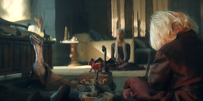 - Meraxes: Ο δράκος της Rhaenys Targaryen, ο οποίος σκοτώθηκε από μια Dornish σφεντόνα. Το κρανίο του βρίσκεται στο Dragonstone και αποτελεί μια σημαντική υπενθύμιση της δύναμης και της επικινδυνότητας των δράκων.